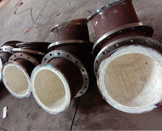 铸钢(包括合金钢)广泛应用在防磨领域,其制造工艺相对简单。但由于材料本身性能的局限和工艺的限制,铸钢材料的表面硬度(约60)远低于陶瓷(80以上),耐磨性能仅相当于陶瓷的几十分之一至更低,(具体数据参见中南大学粉末冶金所的磨损试验报告和日本九州工业陶瓷研究所的喷射磨损试验结果),用其制造的弯头有投运一年多就磨穿的情况。此外,铸钢管道厚度大,非常笨重,且含碳量高,可焊性比较差,需现场对焊缝热处理,给现场的安装维修带来相当大的困难。