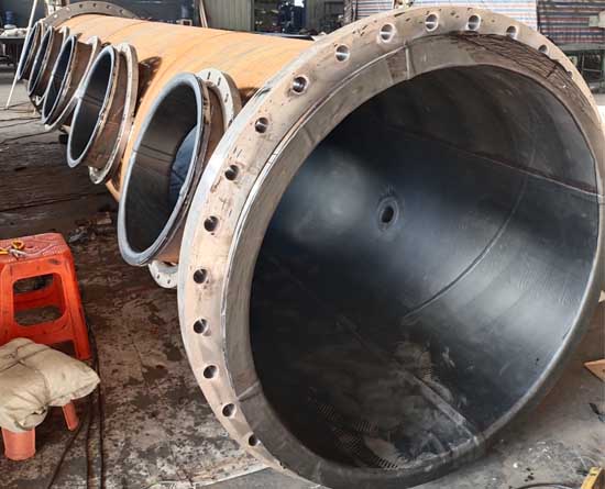 电厂脱硫丁基胶衬胶管道,是一种外部以钢或者硬质结构为管道骨架,内衬耐磨、防腐以及耐高温的丁基橡胶作为衬里层,通过丁基橡胶自身物理和化学性能从而降低了管路输送介质对外部结构的作用如冲击力、腐蚀等电厂脱硫丁基胶衬胶管道的特点:1、结构优良:2、耐腐蚀性能优良:3、耐磨蚀性能优良:4、强度高、抗冲击性高:5、适应性强:6、温度适应范围广7、抗老化性能优越使用寿命长:电厂脱硫丁基胶衬胶管道在正常压力、温度、介质使用下一般使用寿命到15年以上(理论值)。管道使用6--8年后近90°转动一次,使用寿命会更长;